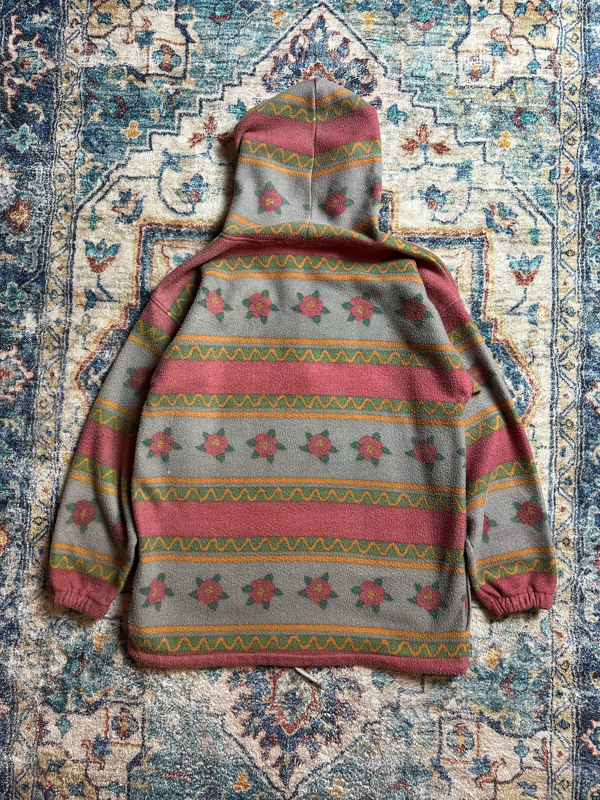 90s Floral Hooded Fleece - M
